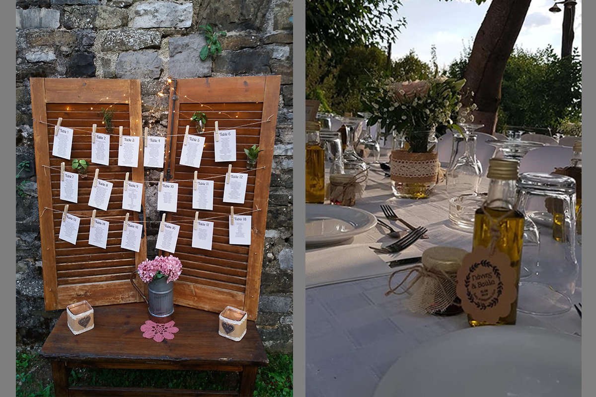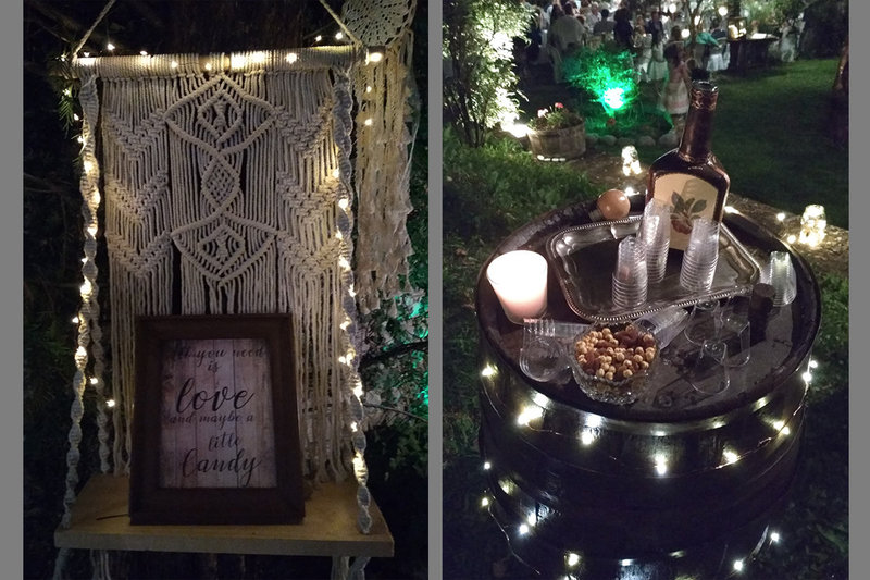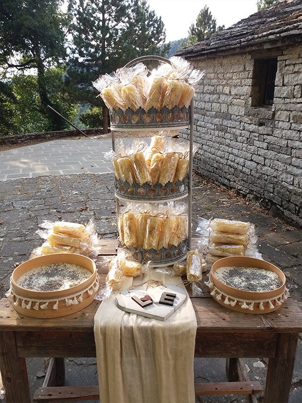 Hanging glass bowls with tiny lights on them, accompanied everyone to the party!A stunning rustic themed buffet placed on the ideal spot to offer a panoramic view of the breathtaking mountain top , Astraka,welcomed the guests with homemade lemonade, coffee liquer and a selection of delicious treats.
