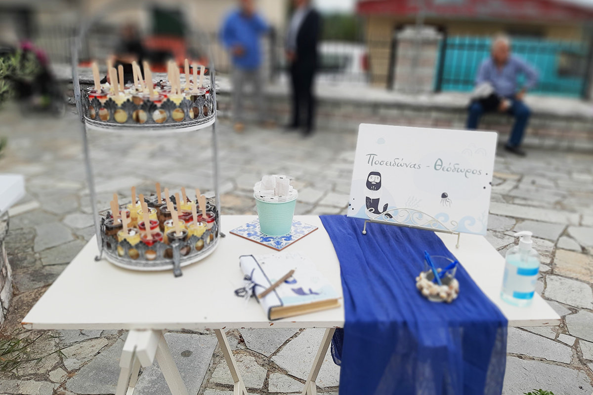 Ο μικρός Ποσειδώνας-Θεόδωρος ταξίδεψε με τους γονείς του από το Bristol για αυτή την ξεχωριστή μέρα στις αρχές του φθινοπώρου.Η βάπτισή του, σε ένα πέτρινο εκκλησάκι λίγο έξω από τα Γιάννενα,οργανώθηκε με πολύ φροντίδα και διαδικτυακή συνεργασία με την μαμά του μέχρι την τελευταία λεπτομέρεια! Custom προσκλητήριο και μπομπονιέρες με τον Ποσειδώνα,διακόσμηση σε μπλέ-άσπρο με πορσελάνες και χειροποίητα πλακάκια και ένα λαχταριστό candy table,ενθουσίασαν τους εκλεκτούς καλεσμένους.Ευχόμαστε καλοτυχία,χαρά και υγεία στο μικρό μας φίλο και την οικογένειά του!