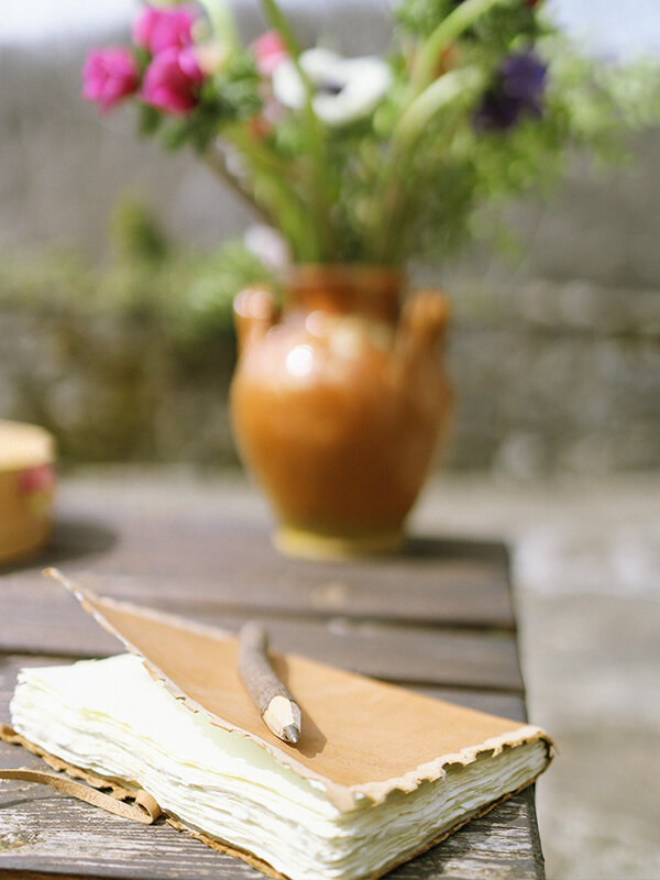 Stationery with handmade paper ,calligraphy and water color elements made the perfect match with the handcrafted rings ,the wild flowers decoration and the amazing ''blooming''cake!